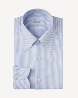 Oxford is a type of woven dress shirt fabric, with something called a “basketweave” structure and a lustrous aspect. For Viola Milano is the oxford shirt the ultimate essential casual-to-formal shirt that goes well with both a denim slack & blazer, such as grey pants and more formal look.