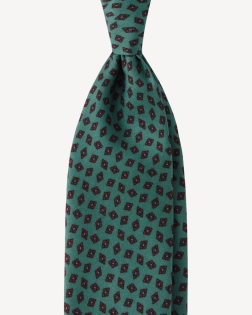 Archive madder ties are always printed on a twill silk fabric treated with ‘gum arabic.’ The madder dyes combined with the gum silk create a characteristic handfeel that is uniquely soft and chalky.